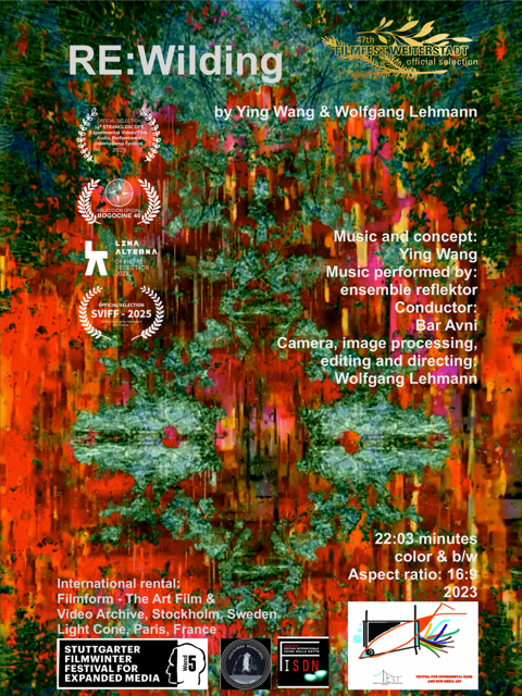 RE:Wilding is a joint production of Berlin based composer Ying Wang and Stockholm based filmmaker Wolfgang Lehmann. The music is performed by ensemble reflektor, conducted by Bar Avni.